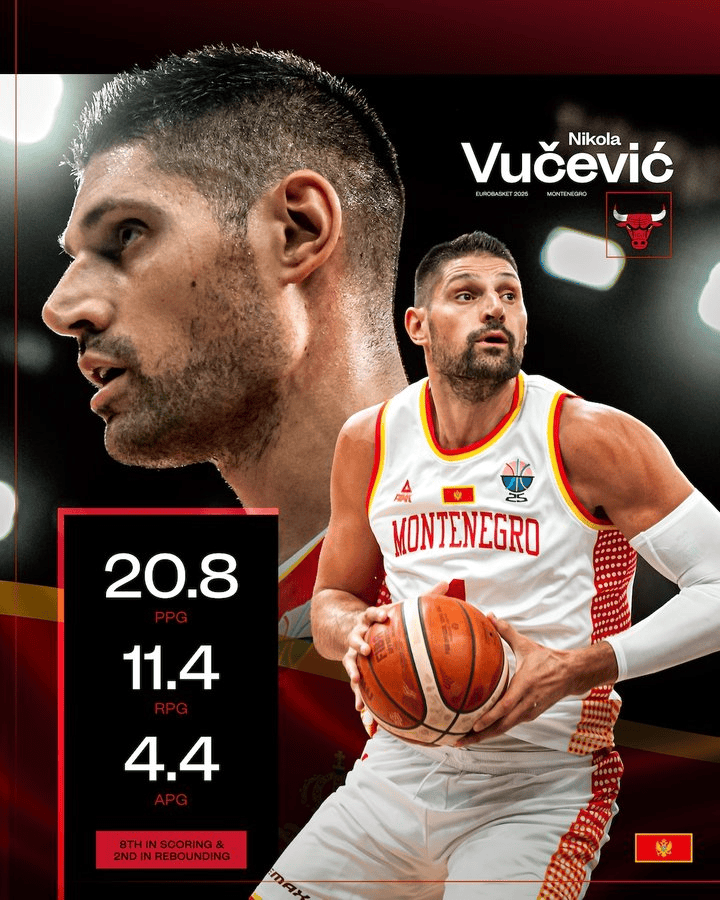 在本屆賽事中,海報武切維奇場均可以得到20.8分11.4籃板4.4助攻。武切維奇