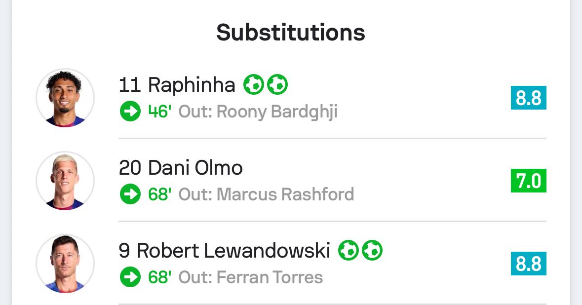 據(jù)Sofascore統(tǒng)計(jì):自2015/16賽季以來,近年拉菲尼亞與羅伯特-萊萬多夫斯基成為歐洲五大聯(lián)賽首對(duì)在同一場(chǎng)比賽中替補(bǔ)登場(chǎng)并雙雙梅開二度的大聯(lián)對(duì)替隊(duì)友。