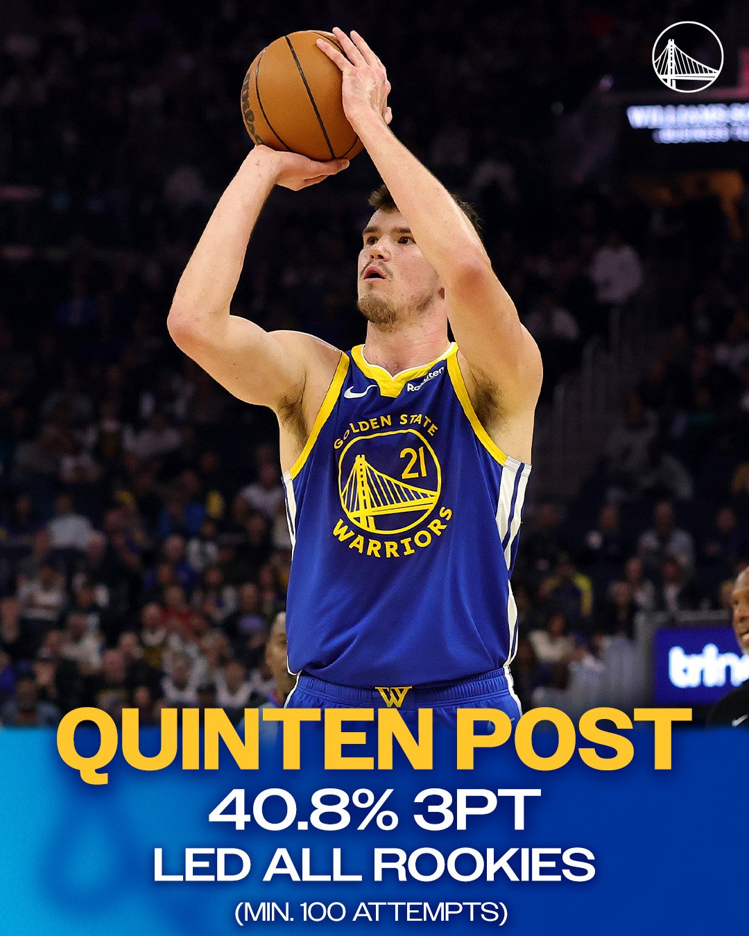 虎撲09月04日訊 勇士官方更新X,曬出一張勇士球員昆滕-波斯特的士官斯特上賽賽場(chǎng)照與球迷分享。