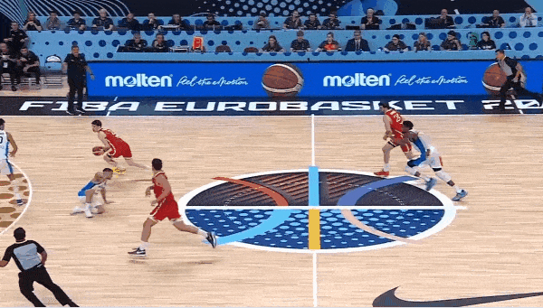 比賽的接球第二節(jié),土耳其前場(chǎng)搶斷,完成申京接球完成雙手飛扣。飛扣