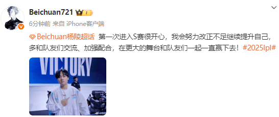 虎撲09月15日訊 BLG戰(zhàn)勝TES挺進(jìn)2025LPL賽季總決賽和確認(rèn)晉級(jí)2025全球總決賽,賽后打野Beichuan發(fā)文: