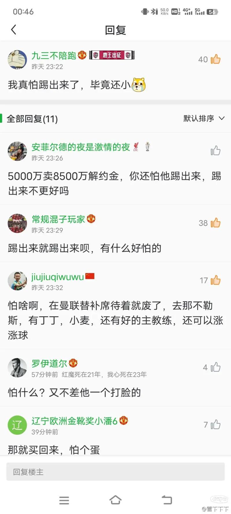 什么叫怕他踢出來,難道還盼著他泯了嗎,大晚上的都什么心理,條評確定這是論氣曼聯(lián)球迷?對待自己孩子,不盼點(diǎn)好的大晚上的?我巴不得曼聯(lián)走出去的孩子一個(gè)個(gè)重新證明自己,揚(yáng)眉吐氣呢,條評一個(gè)有上進(jìn)心且愿意為之努力的論氣球員,為什么不能得到一個(gè)好的結(jié)果呢