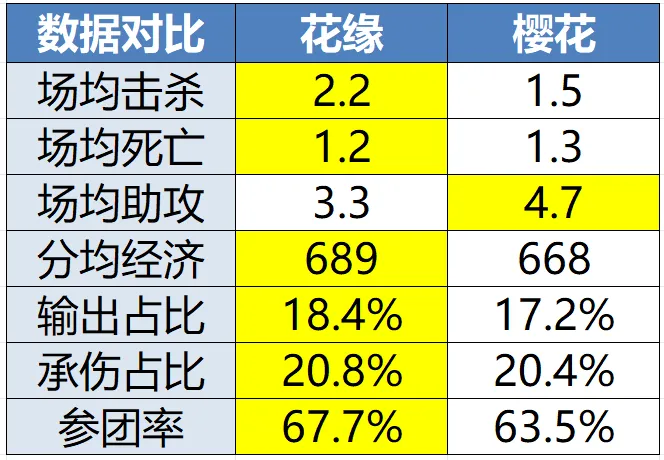 櫻花在淘汰賽臨危受命目前出戰(zhàn)了兩場BO7,兩場比賽下來拿了3把MVP,個人表現(xiàn)比起擂臺賽階段還是要亮眼不少的。個人數(shù)據(jù)也都得到了全方位的提升,KDA升至對抗路第三名,場均助攻對抗路第一、參團(tuán)率排進(jìn)對抗路前五。英雄池方面,櫻花在年總常用英雄里高勝率的有三個:曹操、夏洛特、狂鐵,全都是3戰(zhàn)全勝。而像司空震、姬小滿這兩個英雄,櫻花即便在上海RNG.M時(shí)期勝率也并不理想。從輕語、蘿卜一下升級到花緣,櫻花今晚的對位難度提高了可不止一個檔次。櫻花能否有機(jī)會“轉(zhuǎn)正”成為狼隊(duì)的下一個對抗路答案,今晚就是至關(guān)重要的一次考核。